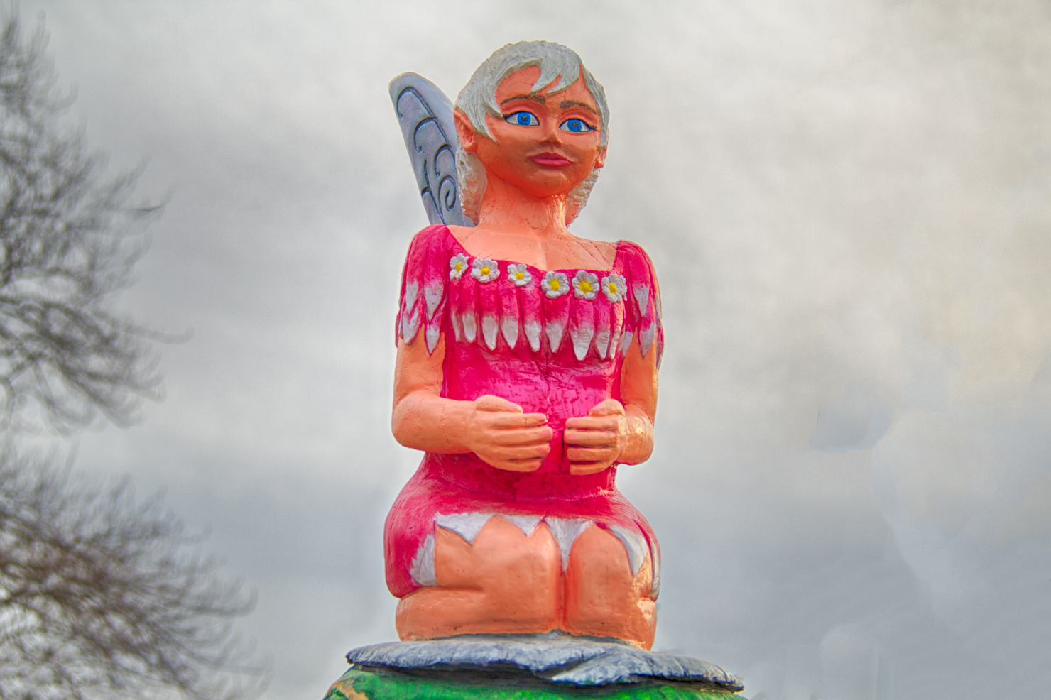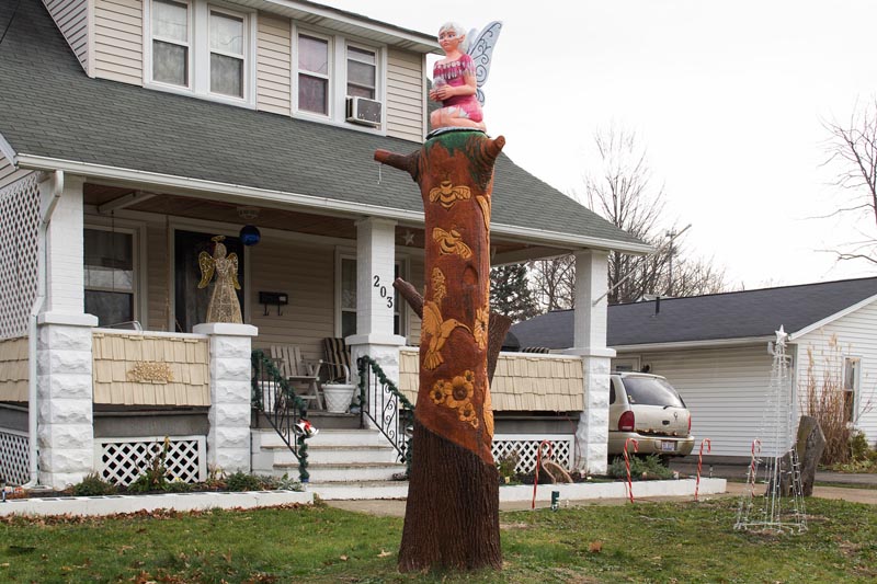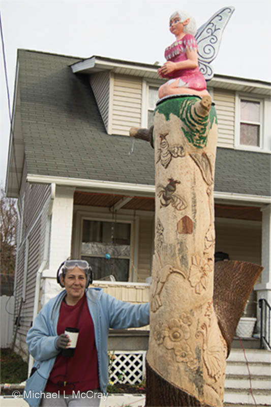 Fairy on of Tree Carving by Shannon Korp on Gulf Road, Elyria brings a unique twist to art form.